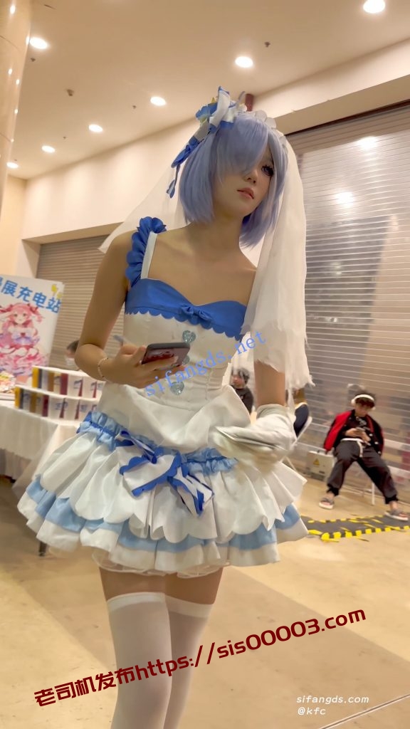 【永久专享】【KFC】顶级身材COSER蕾姆学生妹·过膝白丝婚纱短裙白内可爱【1V】【1.31G】