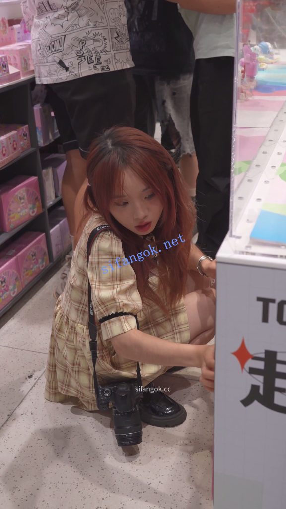 • 格子长裙小姐姐买盲盒,笑容甜美男友面前被抄底。。